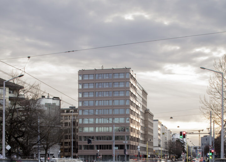 L’immeuble fait partie d’un ensemble mixte des années 70, au sein duquel la problématique d’imbrication et de composition est prégnante. L’intervention réside dans la transformation de la partie existante de bureaux et une surélévation avec trois étages de logements. En sus, la totalité des installations techniques est remplacée. Le projet intègre dans le même temps la reconstruction de la façade, l’enjeu structurel et la question de la continuité au sein de l’ensemble. En tant que bâtiment de front au commencement de la route des Acacias, il bénéficie par ailleurs d’une exposition rare. Au rez-de-chaussée, une arcade urbaine est revalorisée, en lien avec de légères interventions sur les espaces extérieurs de proximité.