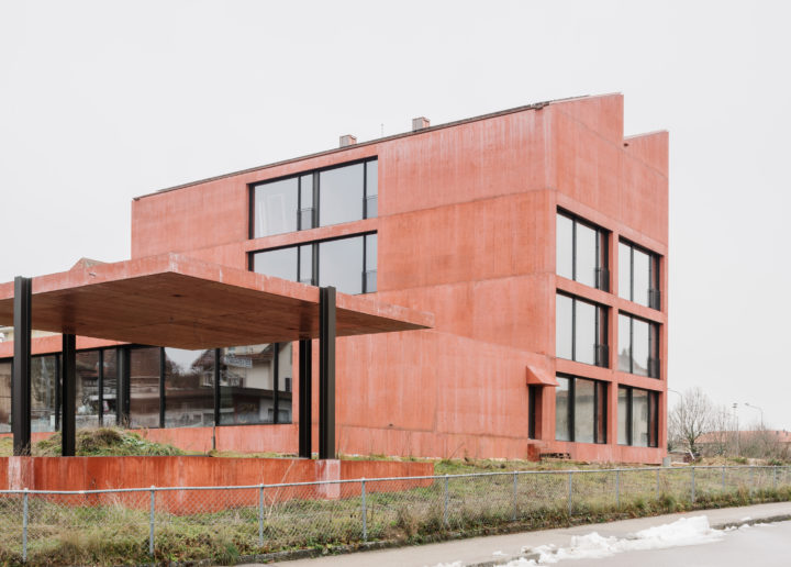 Le nouveau bâtiment de l'école enfantine et de l'école à journée continue prend place à l'extrémité sud-ouest du site et préserve ainsi un grand espace libre au centre du complexe scolaire existant. Les bâtiments historiques des écoles et du quartier adjacent caractérisés par leur volume élancé et leur toiture prononcée créent un paysage remarquable dans lequel la nouvelle école s’inscrit et qu’elle complète. Les volumes du foyer et des classes de l'école enfantine forment un socle horizontal sur lequel s'élève un corps de bâtiment vertical accueillant les programmes de l'école à journée continue. Au dernier étage, profitant de la hauteur à disposition sous la toiture caractéristique du bâtiment, une salle polyvalente ainsi qu'un espace pour la psychomotricité sont aménagés.