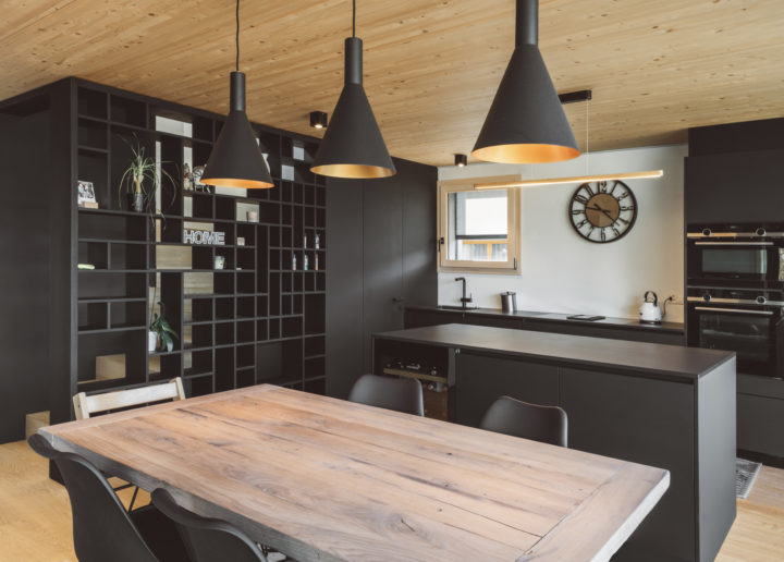 Ce projet transforme une maison familiale à Lens. L’ancienne partie en madrier était devenue obsolète, d’où la démolition et la reconstruction sur le sous-sol en maçonnerie. L’ossature bois est choisie pour la nouvelle partie. La sensibilité du client pour le bois et la légèreté de construction ont été des arguments importants dans ce choix. Le grand dégagement vers l’ouest et la vue sur la vallée du Rhône donnent l’orientation des espaces de vie ainsi que de toutes les chambres. Le séjour et la cuisine sont au rez en lien direct avec le jardin. Ils bénéficient de larges baies vitrées pour profiter pleinement de la vue. La cheminée, pièce centrale de l’étage de jour, articule les espaces et participe à la statique de la maison. Le choix d’intégrer la terrasse à l’ouest dans le volume du bâtiment permet de créer un espace protégé tout en bénéficiant de la vue.