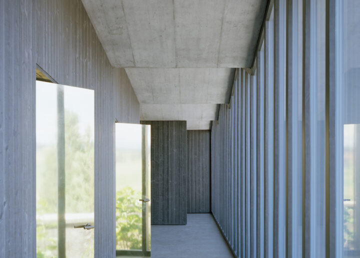 La morgue située à la Grand-Rue 46 n’était plus adaptée aux normes actuelles notamment de par sa vétusté et sa situation. L’enceinte du cimetière est le lieu retenu pour l'implantation de la chapelle mortuaire. Le cimetière surplombe la ville et est composé de terrasses successives en relation avec son contexte paysager. La chapelle est orientée parallèlement aux différents murs de soutènement qui retiennent les paliers du cimetière. Un porche en béton qualifie le volume. A partir de l’espace extérieur, tourné vers la ville, les visiteurs entrent dans le hall, antichambre vers les chambres funéraires. Les matériaux sont réduits, le béton et les lames de bois pré-grisées se retrouvent sans distinction au dehors et au dedans. Et le laiton recouvre les trois portes réservées aux cellules funéraires. Le mur existant du cimetière se trouve face à la chapelle. Il a une valeur contemplative et fait partie du paysage vécu à l’intérieur du bâtiment.