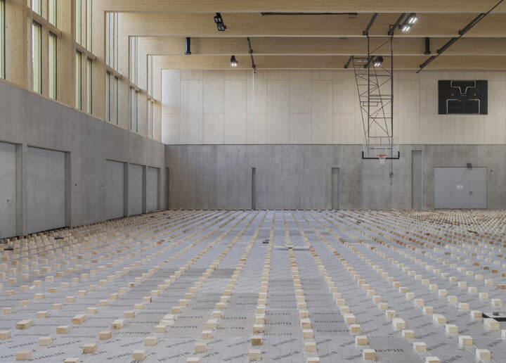 Les quartiers du nord de la ville de Nyon se développent et la ville s'étend. L’infrastructure publique répond aux besoin en construisant le complexe scolaire et sportif au Cossy. Les nouvelles constructions participent à un espace public clairement défini qui borde un parc public plantés d’arbres. Les chemins sont disposés de façon à ce que les passages dans le quartier soient conservés. Le projet participe à la couture entre la ville existante et à venir. Le complexe accueillera 480 élèves à la rentrée 2018. Une salle de sport triple, une piscine, un restaurant scolaire, une salle polyvalente et une Unité d'Accueil Pour les Enfants sont également inclus dans ce programme ambitieux.