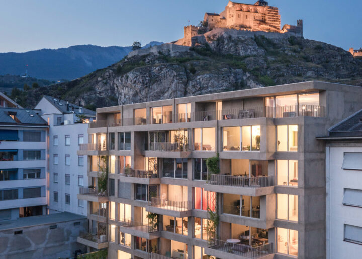 Situé au centre de la ville de Sion, à proximité immédiate de la place du Midi, le projet propose un environnement calme pour une habitation écologique et bien pensée. La parcelle sur un terrain plat permet la vue sur l'un des châteaux de Sion, Valère. Coté Est s'écoule la rivière de la Sionne. Le projet est organisé sur neuf niveaux pour un total de vingt-cinq appartements. Chacun des appartements bénéficie d'un plan traversant orienté est-ouest. Tous les appartements ont une généreuse terrasse. Un soin particulier a été donné à l'organisation des espaces, à la qualité des finitions ainsi qu'au choix des matériaux. De sa conception à sa matérialisation, le projet dirige son objectif vers une contribution au développement durable et garantit un concept pour un bâtiment à faible consommation énergétique.