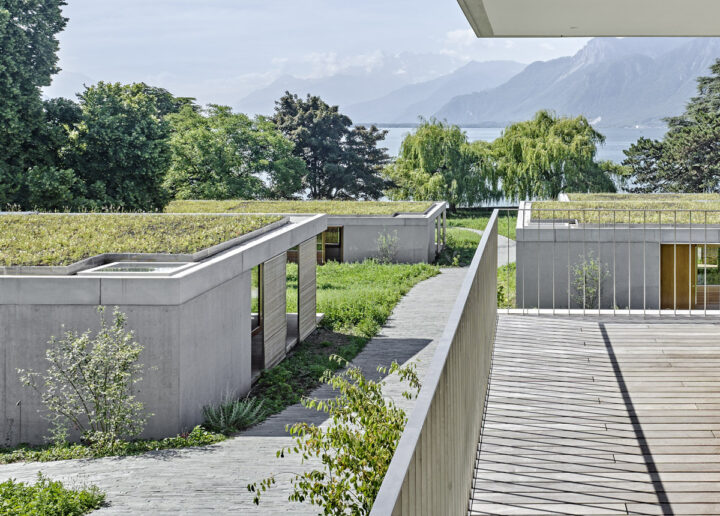 La Fondatrice aimait passer l’été sur sa parcelle au bord du lac, dans son petit chalet. Premier violon à la Tonhalle de Zurich et professeur de violon, elle a désiré partager son héritage avec ses pupilles en créant une résidence d’artistes. Des espaces de rencontre (salon, salle polyvalente), des ateliers et des logements (chambres, appartements et lofts) s’égrainent sur la pente. Entre la proximité du voisinage et l’immensité sublime du paysage, le projet joue de filtres, seuils et transitions. Il cherche à donner à chacun tant l’intimité que le contact avec les autres résidents, tant des espaces de création stimulants que sereins. La construction, exécutée par d’excellents artisans locaux, met en œuvre des matières inspirée du lieu volontairement sans artifices.
