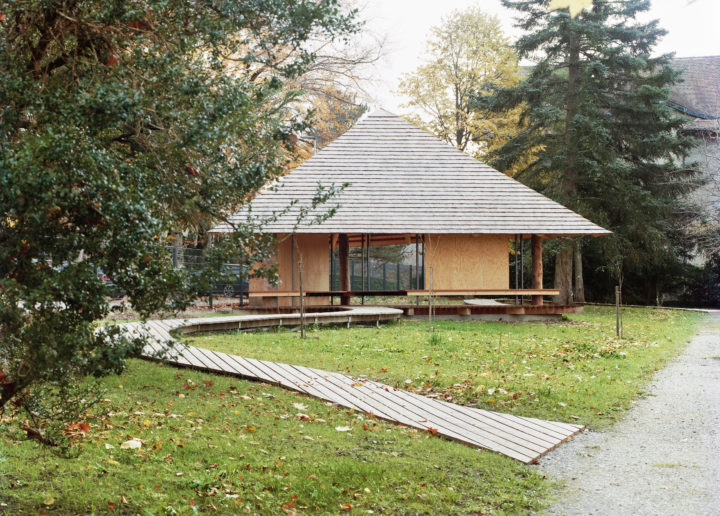 L’inauguration de la Cabane des arbres en avril 2023 marquera le lancement d’un nouveau secteur au Jardin botanique de l’Université de Fribourg. En effet, cette cabane incarnera la thématique ‘‘Arbres du passé – Arbres d’avenir’’ et recevra dans le futur différents événements et ateliers pédagogiques. Trois mélèzes malades ont été abattus et portent aujourd’hui une charpente en structure-parapluie. La géométrie en triangle du plan vient de l’implantation originale des troncs, alors que les angles vifs de la toiture donnent un aspect contemporain au tout, en contraste avec la tradition de la couverture en bardeaux. Les cimes des troncs ont, elles, été travaillées dans une scierie locale et transformées en planches pour le plancher et les bancs. Enfin, de longues rampes vous mènent jusqu’à la cabane en dansant entre les futures plantations de ce nouveau secteur à découvrir.