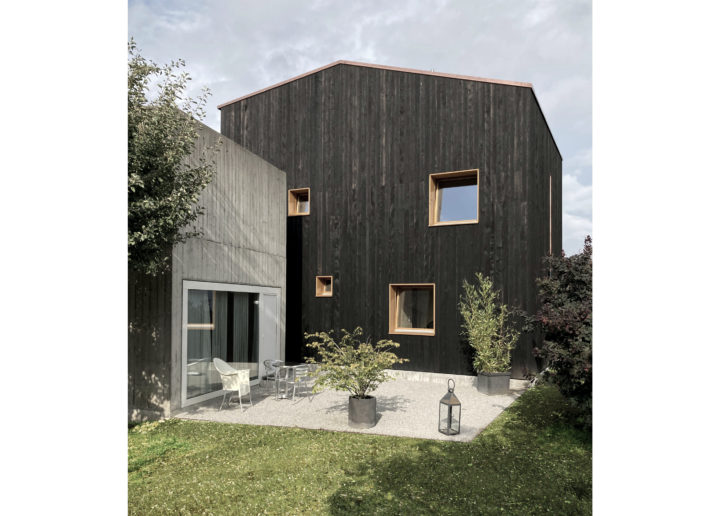 149,6 m2 est la surface de terrain nécessaire à l’implantation de cette maison familiale et de sa cour fermée. Densité, ergonomie, valorisation des espaces sont les axes de réflexion du projet. Près de vingt ans après la construction d’une première maison, maintenant recensée aux biens culturels, la parcelle est complétée par une construction en bois brûlé. Authentique exercice de densification, les deux habitations, réalisées par le même architecte, dialoguent dans un espace restreint sans compromis sur les qualités attendues dans le logement. Bâtie en ossature bois et organisée sur trois niveaux, sans sous-sol, la maison tire pleinement parti des caractéristiques du lieu. Bénéficiant d’une cour intérieure et d’une toiture terrasse, la diversité des aménagements en fait un environnement autonome. La grande perméabilité entre intérieur et extérieur confère aux pièces de vie, rez-de-chaussée et étage supérieur, une générosité qui résonne avec la densité du projet.