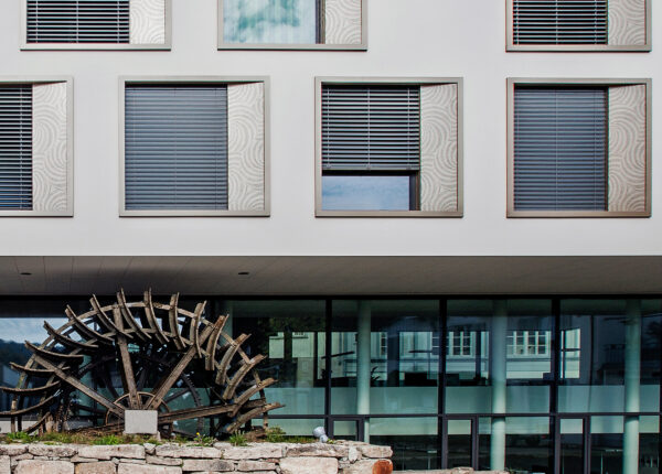 Das Wohn- und Geschäftshaus Sagibach entspricht in vielerlei Hinsicht der Morphologie des historischen Ortskerns. Bauten am und über dem Wasser haben in Langenthal ebenso Tradition wie der Schutz vor dem Hochwasser durch erhöhte Vorzonen. Typisch für Langenthal ist auch die Nutzungsdurchmischung, unten wird gearbeitet, oben gewohnt. So ist am Standort einer ehemaligen Sägerei (daher der Name Sagibach) ein zeitgemässes Gebäude entstanden, das sich nahtlos in das Stadtgefüge einordnet. Dank einem veritablen statischen Kraftakt konnte das noch vorhandene alte Wasserrad erhalten und in den Neubau integriert werden. Der Niveausprung von Ober- und Unterwasser des Sagibaches, gewissermassen die Topografie des Ortes, wird genutzt um Tageslicht in die Räume im Untergeschoss einfliessen zu lassen. Über der transparenten rund um laufenden Glasfassade des Erdgeschosses kragt ein massiver zweigeschossiger Baukörper über den Sagibach hinweg, ein dialektisches Spiel zwischen leicht und schwer.