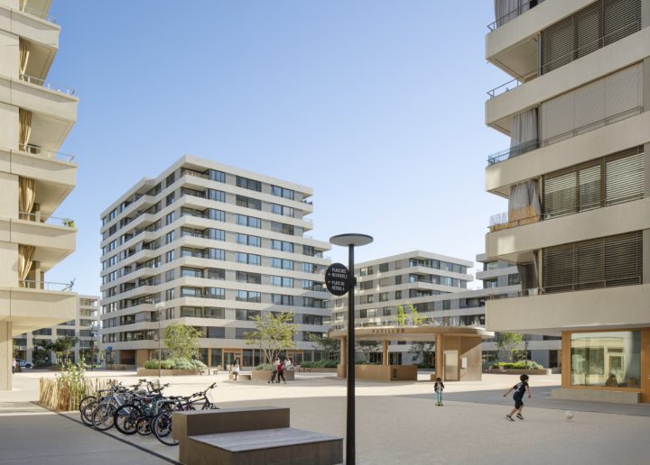 Le projet est constitué du bâtiment « plié » qui délimite un grand jardin collectif sur l’angle sud-ouest, il est lié par le volume de la rampe d’accès au parking au bâtiment haut qui joue le pivot d’accès à l’espace public interne à la pièce urbaine. Le jeu des ouvertures conjugue à la fois l’orientation de la barre pliée sur le jardin sud-ouest et la mise en valeur des angles. Ce principe génère deux types de façades, l’une plutôt lisse côté urbain et l’autre creusée côté jardin. Ce phénomène s’estompe aux étages supérieurs pour mettre en valeur les angles et rechercher les échappées sur le grand paysage. Le bâtiment haut rayonnant de tous côtés met quant à lui un accent particulier sur l’orientation sud sur le Mont-Blanc valorisée par un balcon filant. La matérialité conjugue la durabilité du béton préfabriqué, élément constitutif de l'expression architecturale du projet, à la chaleur du chêne qui habille les espaces communs au rez-de-chaussée.