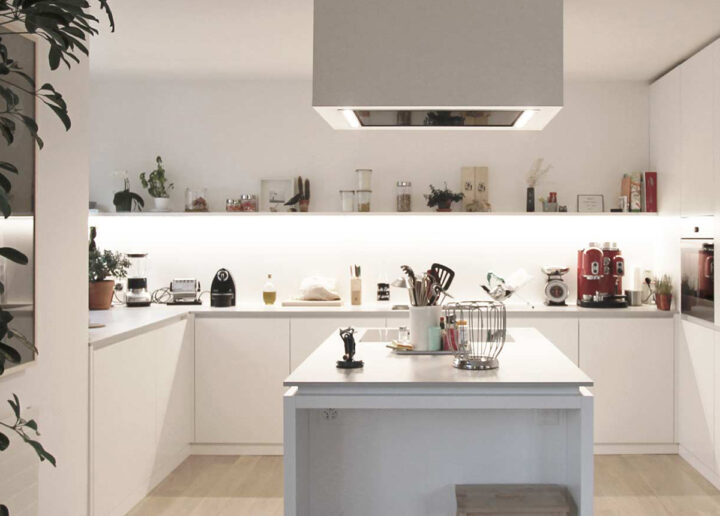 Le duplex bénéfice de la forme du toit pour l'aménagement de pièces polyvalentes. Un premier travail a été exécuté dans cette zone de l'appartement. Une respiration a été créée au sein de l'habitat par la transformation du rez-de-chaussée permettant une perméabilité entre les différents espaces de la pièce de vie.