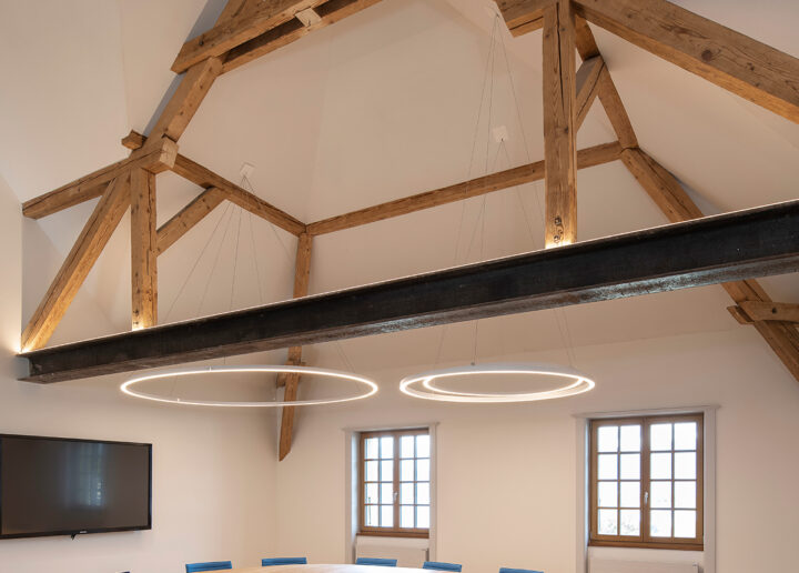 La municipalité de Port-Valais a acquis le bâtiment historique de la gare avec guichets et appartements de service des années 1920. La tâche était de le réhabiliter pour y installer l'administration communale, l'office du tourisme et une salle polyvalente. Grâce à des interventions concentrées et mesurées, le projet adapte la typologie aux nouvelles exigences fonctionnelles tout en restant au plus près de l’esprit du bâtiment originel. Le hall central reste le cœur du dispositif. Tirant parti de sa situation privilégiée, entre ville et gare, entre aile gauche et aile droite, il est traité comme un espace multifonctionnel flexible et adaptable. La salle du conseil en est son pendant symbolique. Elle est aussi placée dans la travée centrale, au dernier étage. La suppression du plancher des combles permet de laisser apparaître l’enchevêtrement de poutres supportant la couverture, dotant cette salle d’une spatialité généreuse et particulière en accord avec son importance.