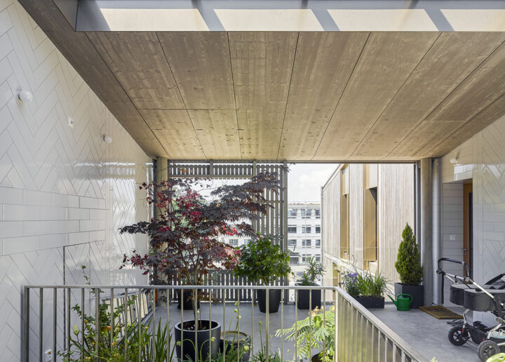 Ce projet de 49 logements Minergie P Eco et d’une crèche est issu d’un concours organisé par la Mairie de Chêne-Bougeries pour l’attribution d’un DDP à une Coopérative sur la base d’un projet social et architectural. Il se présente comme six grandes maisons, distribuées deux par deux par de larges paliers extérieurs, insérés dans le volume bâti. Il offre une série d’espaces communs de caractères et de tailles variés, appropriables au gré des besoins aux fins de développer les différentes formes de convivialité qui sont au coeur des préoccupations de la coopérative, au delà de la simple création de logements. Il contient une variété de logements allant du 3 au 6 pièces, un appartement communautaire de 10 pièces et trois chambres d’amis.