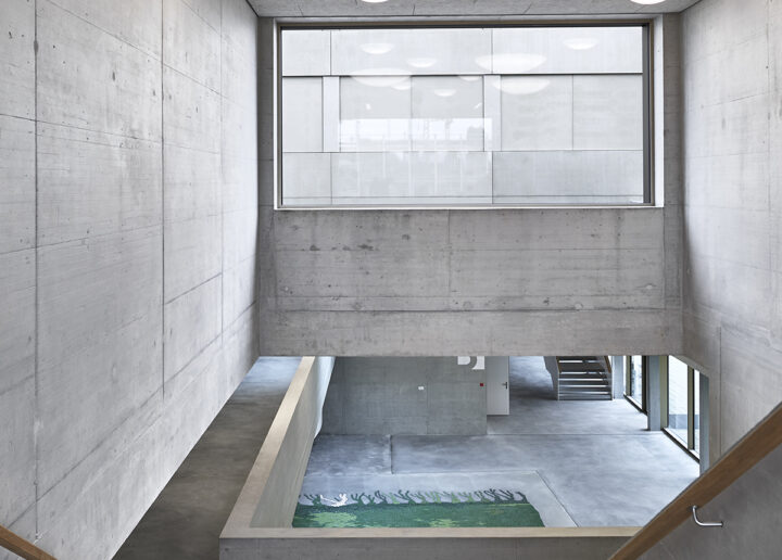 Das Schulhaus Sandgruben ist Teil der Schulraumerneuerung zur Umsetzung des HarmoS-Konkordats. Im Sinne einer pädagogischen Neuausrichtung stand die Absicht im Zentrum, die Schule als Ganzes und nicht den einzelnen Klassenverbund zum Bezugspunkt des Schulalltags zu machen. Als vielfältig nutzbare «Möglichkeitsorte» kommt dabei den Übergangsräumen eine zentrale Bedeutung zu. Zusammen mit dem 2017 sanierten Altbau spannt der windmühlenförmige Neubau einen grossen Pausenhof auf. Der Regelunterricht findet in sogenannten Lernateliers statt, einem durchlässigen Cluster aus Inputraum, Gruppenraum und Atelier mit Einzelarbeitsplätzen. Wie später in der Berufswelt, sind die Klassen alters- und niveaudurchmischt. Knapp 600 Schülerinnen und Schüler besuchen den Unterricht im Sekundarschulhaus Sandgruben, wovon rund ein Fünftel mit besonderen Förderangeboten. Das Gebäude soll ihnen einen stabilen Rahmen bieten, der gleichzeitig flexibel genug ist, sich mit der Gesellschaft weiterzuentwickeln.