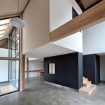 La ferme, n'étant plus en activité, a vu l'espace du pont de grange transformé en logement par *tangram architectures à la demande des propriétaires. Pour optimiser l’espace et le budget, l’ensemble du volume de la grange a été isolé, puis des boîtes indépendantes correspondant aux chambres ont été construites. Cette disposition permet de conserver le caractère monumental du pont de grange tout en assurant l’intimité nécessaire. Au centre, le volume de la cuisine intègre discrètement la salle de bains et un escalier menant à l’étage. La rénovation met l’accent sur des matériaux naturels, avec une isolation en fibre de bois et un bardage en bois brûlé. Grâce à une pompe à chaleur et des panneaux photovoltaïques, ce logement écologique allie confort et faible consommation énergétique.