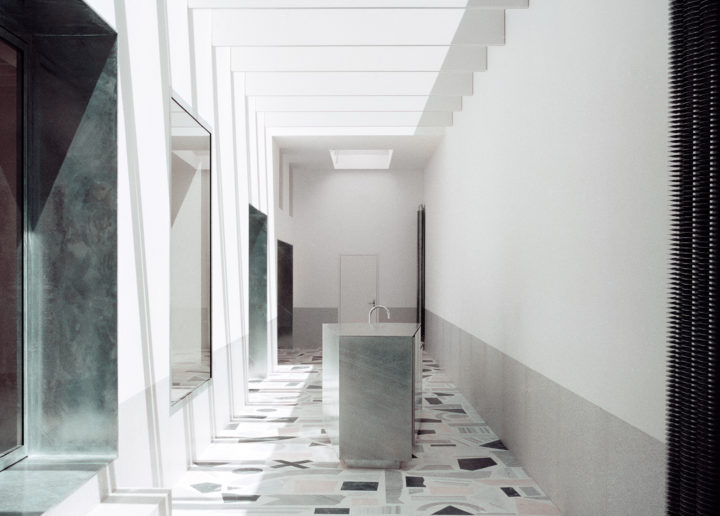 Situé au centre des Pâquis, le projet se développe dans une des cœurs d’ilots du quartier. Ancien espace industriel, ce lieu est totalement transformé pour une nouvelle activité. On y accède par un portail galvanisé à formes géométriques. Une rue intérieure amène progressivement le visiteur à découvrir cet espace résolument introverti. Telle une colonne vertébrale, elle le structure et le distribue. Elle est l’espace majeur du projet. Son sol contemporain en pierre évoque les rues d’antan. Elle est éclairée grâce par une verrière faisant bénéficier l’ensemble du projet d’une belle lumière naturelle zénithale. Trois espaces d’activités s’ouvrent généreusement sur elle. Le dernier s’articule sur deux niveaux reliés par un escalier lumineux donnant un accès particulier à deux terrasses. Cette séquence spatiale, amenant l’usager de la rue au cœur d’ilot est une des thématiques fortes du projet. La pierre, le verre et l’acier galvanisé habillent l’ensemble des espaces parcourus.