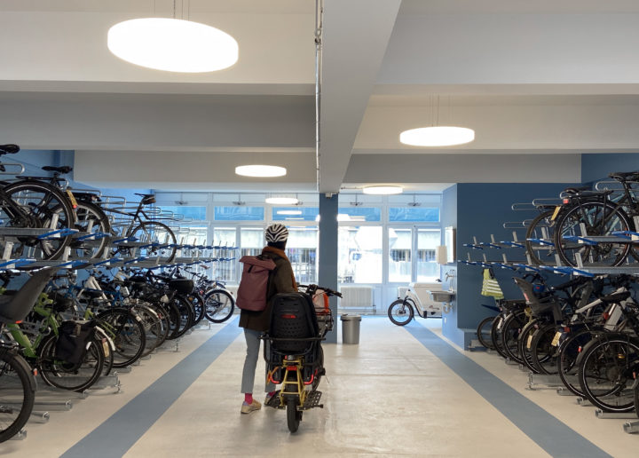 Une vélostation de 96 places avait été réalisée par TRIBU en 2013 dans le sous-sol de la déchetterie de la gare de Lausanne. Afin de garantir l’offre en place de stationnement vélo sécurisé, cette vélostation est déplacée à proximité le temps des travaux de transformation de la gare. La nouvelle vélostation prend place à l’Avenue de la gare dans un ancien local commercial. Elle est directement visible et accessible depuis la rue et se présente comme une boutique avec ses deux vitrines qui accueillent des vélos. Les travaux de transformation ont consisté principalement au décloisonnement du local afin d’en utiliser le potentiel maximum. Le stationnement vélo s’organise de part et d’autre du local et laisse le regard traverser la pièce jusqu’à la cour arrière. Différents éléments de l’ancienne vélostation ont été récupérés et intégrés dans la nouvelle. L’emplacement de la vélostation est temporaire. Elle est vouée à être redéplacée une fois les travaux de la gare terminés (horizon 2030).