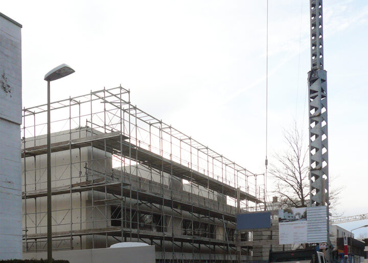 Die Leimeneggstrasse ist durch die Wohnsiedlung des Architekten Hermann Siegrist geprägt. Das Doppelhaus und die Fünferreihe aus den 1930er Jahren sind wichtige Zeugen des modernen Bauens in der Schweiz. Zwischen den beiden Häusern befindet sich der Neubau, welcher den Fussabdruck und die Höhe des ehemaligen Kutscherhauses übernimmt. Dadurch bleibt die Strassenausweitung erhalten und die beiden Nachbarbauten können nach wie vor als Ensemble gelesen werden. Der Neubau orientiert sich im Ausdruck ebenfalls den Siegrist-Häusern und fügt sich zurückhaltend und selbstverständlich ein. Das Sichtbetonhaus erhält mit dem Fassadenabsatz zum Attika und dem Vordach über die gesamte Längsfassaden eine horizontale Betonung. Im Gegensatz zu den Siegrist-Häusern haben sich die Konstruktionsstärken aufgrund der energetischen und konstruktiven Anforderungen deutlich erhöht. Diesem Umstand wird in der tektonischen Fassadengliederung Rechnung getragen, womit das Gebäude seine Eigenständigkeit erhält.