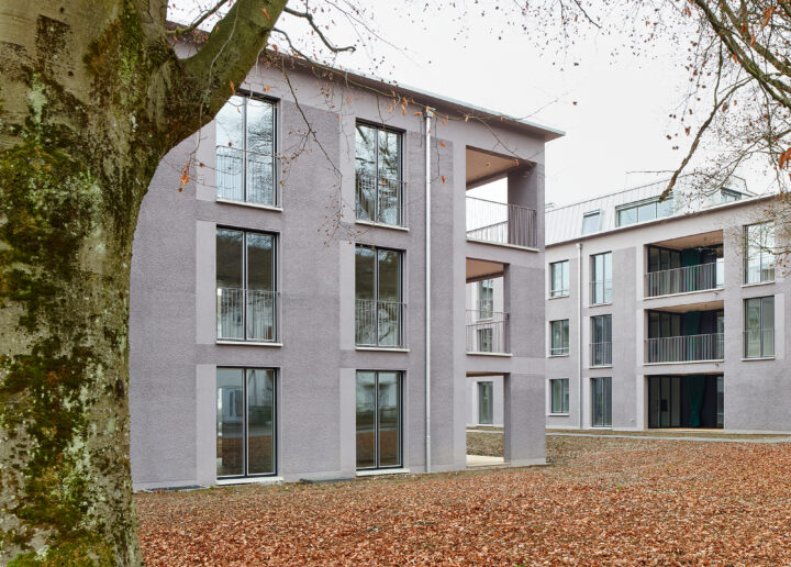 Das präzise und sensible Aufspüren der Atmosphäre der Quartiererhaltungszone als Teil des durchgrünten Quartiers in Winterthur - Veltheim, die Auseinandersetzung zwischen Alt und Neu, zwischen Vorgefundenem und Neuinterpretation prägt die Konzeption: Die städtebauliche Struktur baut auf dem heutigen Bebauungsmuster auf und benutzt es als Ausgangspunkt. Modifizierte Zeilen ermöglichen Durchlässigkeit und Durchgrünung und halten das vorhandene Gleichgewicht von Bebauung und Freiraum. Es entsteht ein klares Muster, das unterschiedliche, gut nutzbare und aneigenbare Freiraumsituationen schafft. Die seitliche Verlängerung der Köpfe der Zeilenbauten überspielt die neue Tiefe der Baukörper und erhöht die Länge der Südfassaden. Durch das Knicken der Zeilen profitieren alle Wohnungen sowohl von dreiseitiger Belichtung als auch vom optimalen Bezug zum Aussenraum. Jede Wohnung verfügt mit der Loggia über einen grosszügigen privaten Aussenbereich als Aussenzimmer.